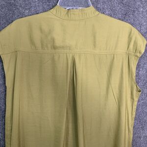 Joie Button Up Blouse Cap Sleeve Olive Band Collar Chest Pockets