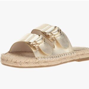 Joie Cagney Leather Espadrille Gold Slide Sandals New!