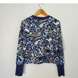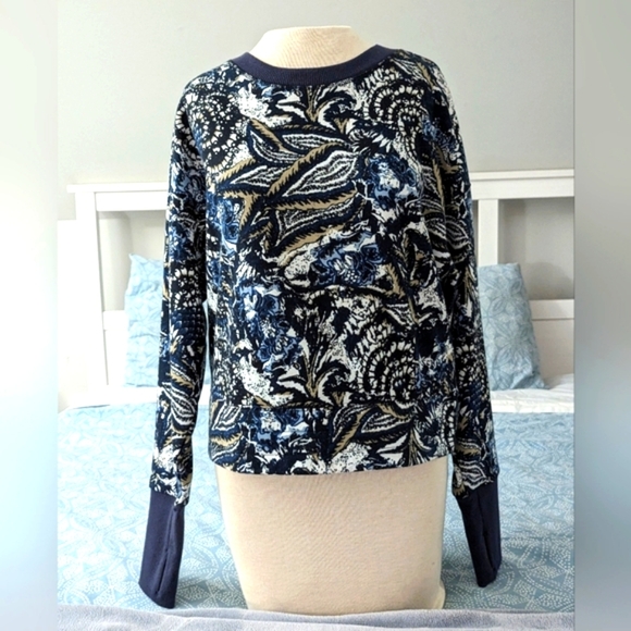 Crewneck paisley patterned blue sleeves thumb holes thick sturdy material cotton ships quickly comfy chilly Fall Autumn Winter gift for her snow Hanukkah Chanukah holiday party warm thick material natural fiber designer Christmas gift present green gold floral loose fit casual cabin apres ski