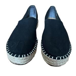 Joie Cara Platform Espadrilles Slip On Canvas Loafers Black Jute Office Size 8.5