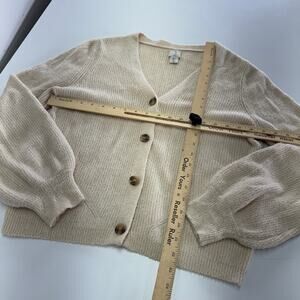 Joie Cardigan Womens Large Cream Ribbed Knit Button Up Sweater Minimalist