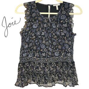Joie Celadine pure silk blouse with pleating and peplum, in rich floral print