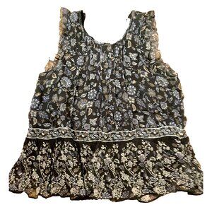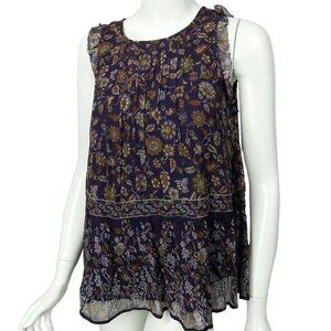 Joie Celadine sleevless blouse in pure silk, intricate pleating and a flutter peplum