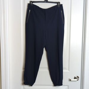 Joie Navy Jogger Pants Side Zipper Pockets Zip Fly Elasticized Hem.