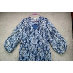 This is a Joie Chiffon Tiered Maxi Dress that is a size XL. It has long balloon sleeves and is 100% Polyester. Laying flat, it measures: Armpit to armpit-23" and the length is 45". It is in great condition. Very pretty and flowy.