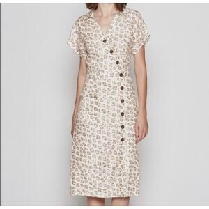 Joie Coady 100% Linen midi Dress Cheetah beigeSize XL Resort Wear quiet Luxury
