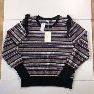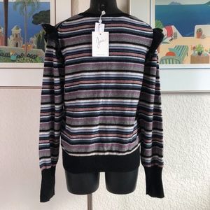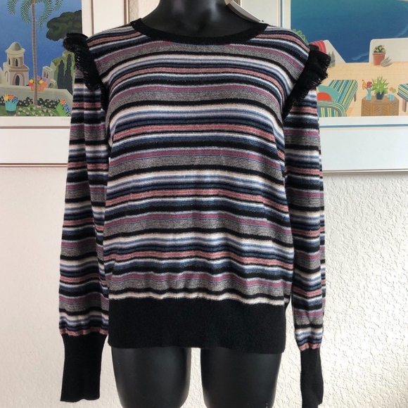 Joie Color Multi Stripe Wool Cashmere Sweater Long Sleeve Ruffle Top Size Large