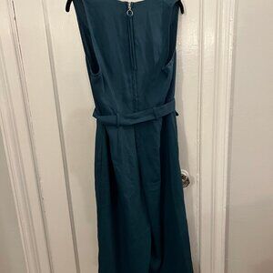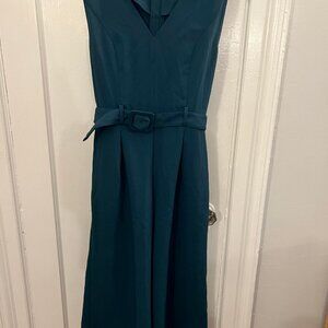 Features: V-neck; Sleeveless; Exposed back zip; Removable belt; Side-seam pockets; Wide leg; Cropped.