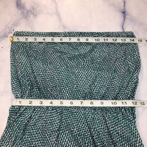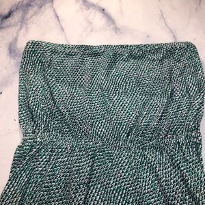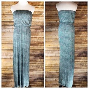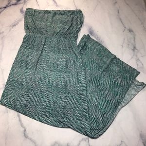 Fun and flirty Joie Dalila strapless maxi dress! Gorgeous blue and green pattern in a leaflike design with a strapless cut and cinched waistline, with one side slit and a draped fit. In very good condition!