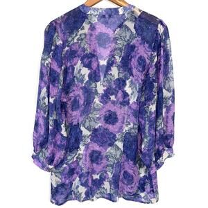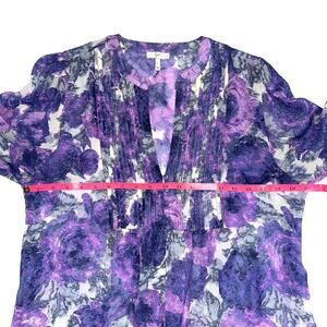Joie Datev Purple Floral Pintuck Button Down Silk Blouse Size Large