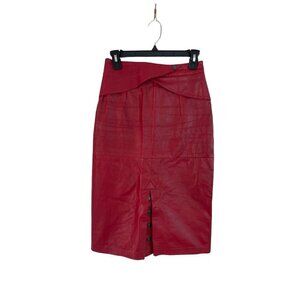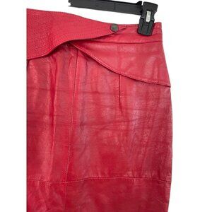 Chic Joie De Vie red leather skirt, size 6. Vintage style with a modern twist, featuring a snap slit mini design. Made in India, perfect for womens.
