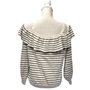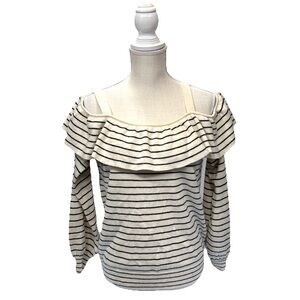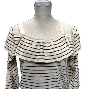 Joie Delbin Cold Shoulder Wool Cashmere Sweater Women’s M Striped Ivory Pullover