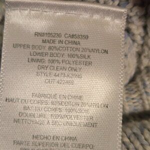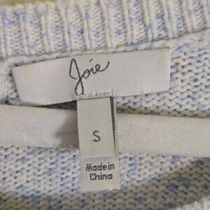 Joie Dessa Silk Cotton Layered Floral Mixed Media Sweater Dress Size S. Pit to pit 19", shoulder to hem 39", Marled Cream Blue Sweater Top, 3 Button Back Claire, 3/4 Sleeve, Beautiful Silk Blue Yellow Rose Floral Skirt, Lined, Ribbed Drop Waist, All Season, Retail $388. Good Pre-Owned Condition