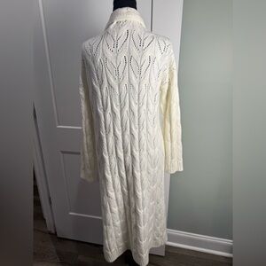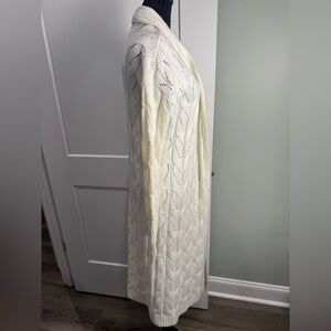 Joie Dusty Rose white Cable Knit Long Duster Open Cardigan Sweater Size M