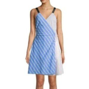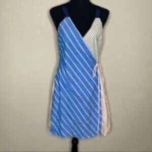 Joie Editha Women's Plunged V Neck Sleeveless Fit & Flare Stripe Wrap Mini Dress