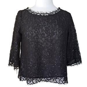 Joie Elvia Black Lace Top Size Small Metallic Button Back Cropped Sheer