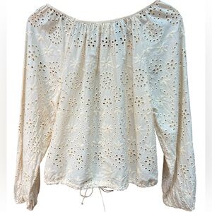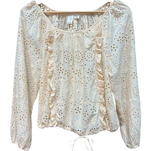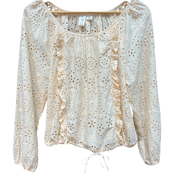 Joie Eyelet Ruffle Drawstring Blouse