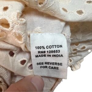 Light cream/muted yellow eyelet blouse with delicate ruffle detailing down the front.