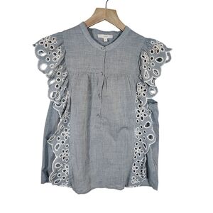 Joie Blue Flutter Sleeve Eyelet Top Size Medium