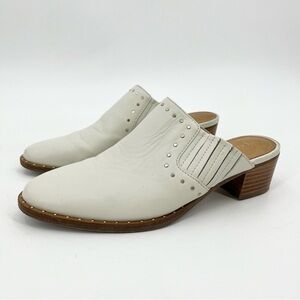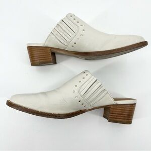 Joie Fayla Ivory Leather Studded Block Heel Mules EU 36/US 6