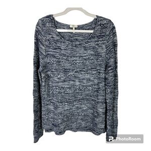 Joie Feria Textured Linen Blend Scoop Neck Sweater Blue Sz L