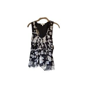 Joie "Flo" silk floral tassel tank top in black with white print. Lightweight, sleeveless, and flowy with a tassel-tie neckline. 100% silk. Women's size L.