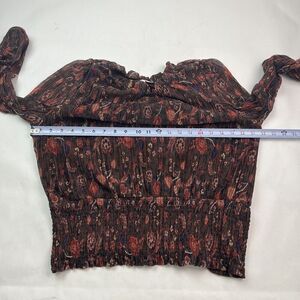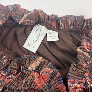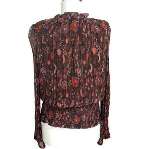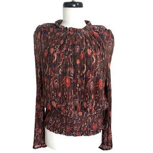 * Joie Floral Blouse Womens XL Smocked Hem Pink Brown Metallic Long Sleeve Top