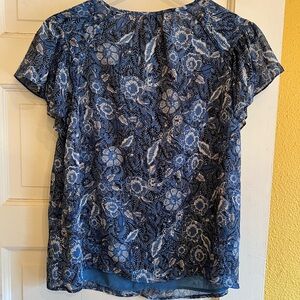 Joie Floral Blue Women's Top with Silver Detailing | size Medium