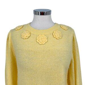 Joie Floral Embellished Puff Sleeve Crewneck Sweater Yellow Size Small