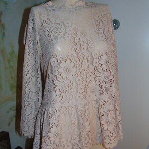 Joie Floral Lace Blouse Top Womens Small Boho Textured Back Button Long Sleeve