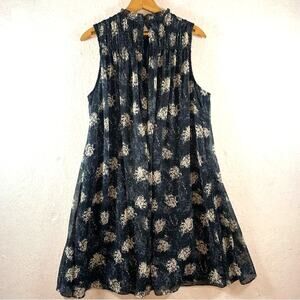 Joie Floral Midi Shift Dress Sz L Navy Dark Cottage Romantic Flowy Chiffon