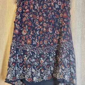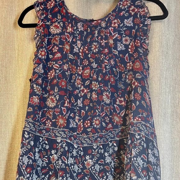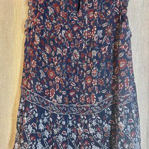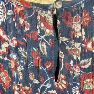 Beautiful Red and Navy floral print. One button closure on back. Sleeve has small ruffle. This is fully lined. Worn once. In excellent condition from smoke free home.