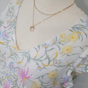 Joie Flutter Sleeve Linen Ivory Mini Floral Pastel Short Garden Dress Small Pink