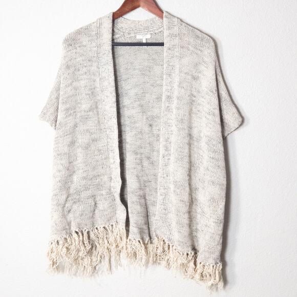 Joie Fringe Hem Cardigan Sweater Light Gray Size L Coastal Grandma