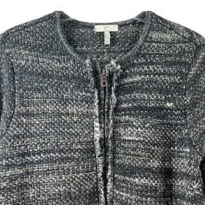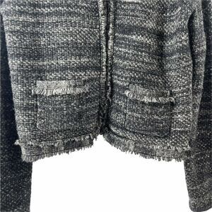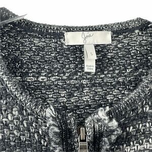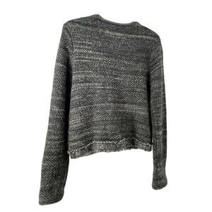 Joie Full Zip Sweater Women's Size Small Gray Marled Wool Blend Sweater Fringe Trim Pockets Classic Chic Emily Gilmore Vibes
