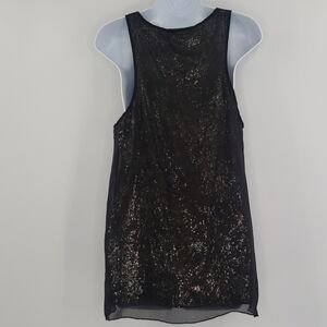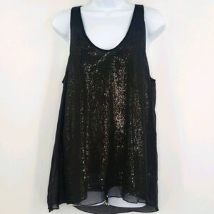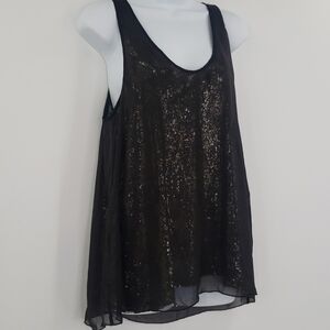 A filmy layer of sheer chiffon floats atop a brilliantly sequined tank in a stunning double-layer style.