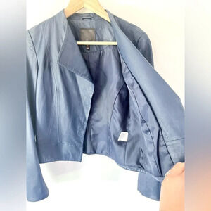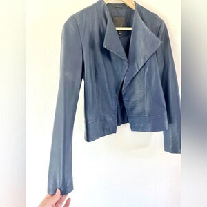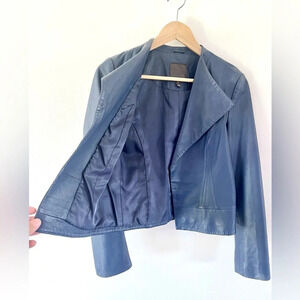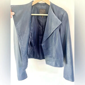 Joie Genuine Leather Navy Blue Open Front Fold Over Collar Blazer Size Small