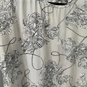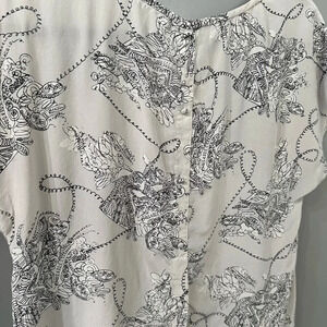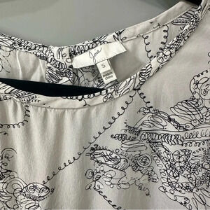 Joie Gray Blouse Short Sleeve with Black Abstract Floral Design Size Small