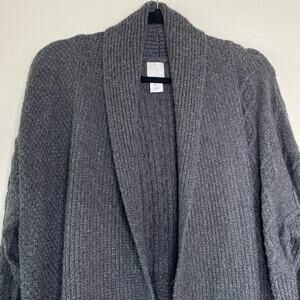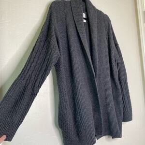 Joie Gray Cable Knit Open Front Chunky Cardigan Large