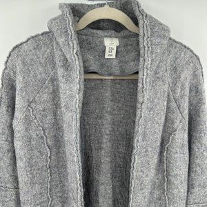 Joie Gray Hooded Wool Blend Open Front Sweater Heavy Seam Size Medium