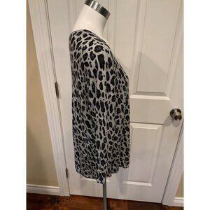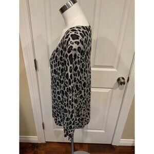 Joie Gray Thin Knit Leopard Print V-Neck Sweater, Size S