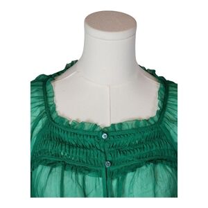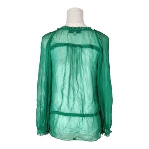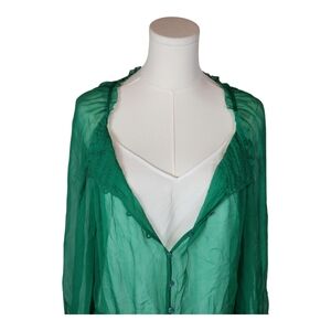 Joie Green 100% Silk Sheer Blouse S Boho Peasant Button Front Lightweight