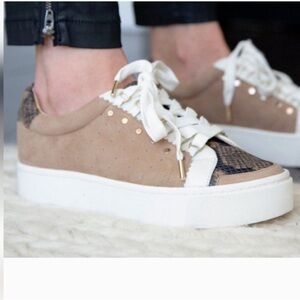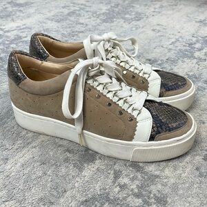Joie Handan Camel Tan Suede Snakeskin Toe Platform Sneaker Sz 39