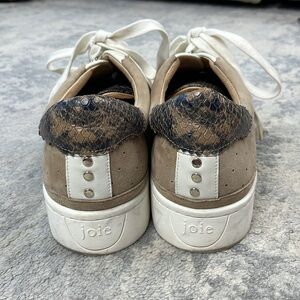 Joie contemporary footwear is a collection focused on feminine and easy, yet modern styles. This fashion sneaker features a soft suede exterior with snakeskin accents. Lace up.