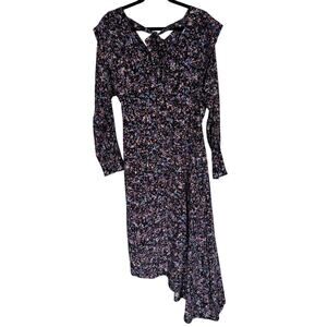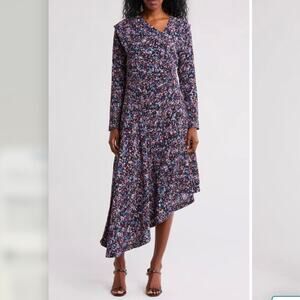 Joie Harris Asymmetric Long Sleeve Dress in Caviar Multi Womens 12