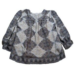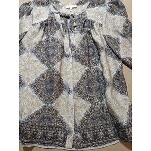Joie Hartford Tie Neck 3/4 Sleeve Top Blouse in Multi-Color Medallion Silk Sz M