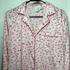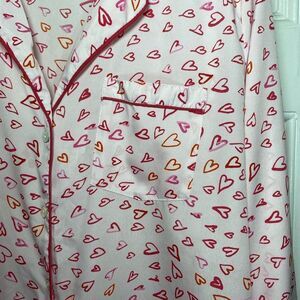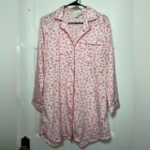 Joie | Heart Print Button Down Long Sleeve Sleep Shirt Nightgown Sz Small