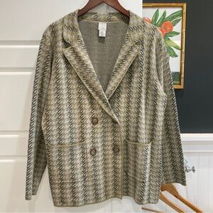 Joie Houndstooth Double Breasted Knit Cardigan Olive Green XL