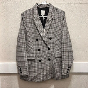 Joie Houndstooth Neutral Double Breasted Wool Blend Blazer Coat Jacket NWT M