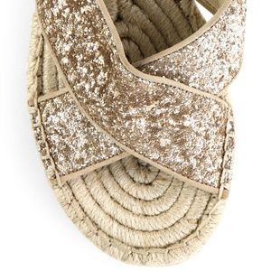 Joie Ianna Glitter Suede Gold Espadrille Slide Sandals
